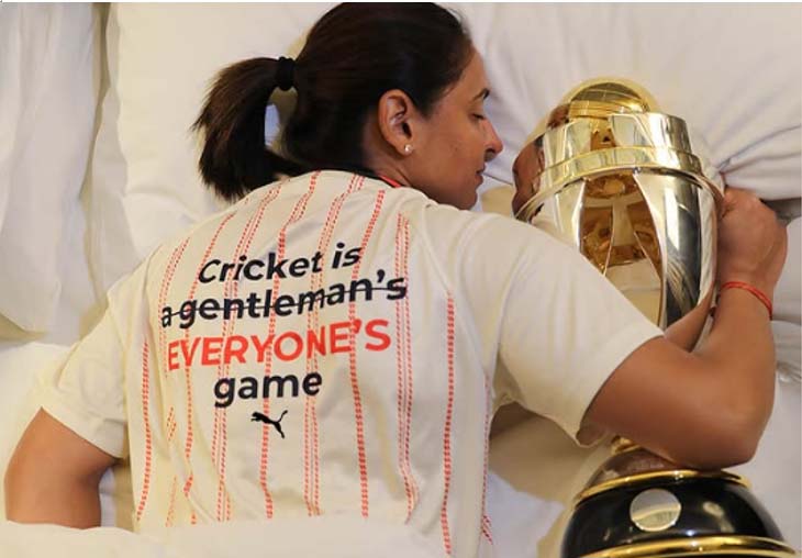 ନୂଆଦିଲ୍ଲୀ: ଭାରତୀୟ ମହିଳା କ୍ରିକେଟ ଟିମ ବିଶ୍ୱ ଚାମ୍ପିୟନ ହେବା ପରେ ଖେଳାଳିମାନଙ୍କ ପାଦ ଖୁସୀରେ ତଳେ ଲାଗୁନି । ଦୀର୍ଘ ଦିନର ଅପେକ୍ଷାର ଅନ୍ତ ଘଟିଛି । ରାତିସାରା ଟ୍ରଫି ଜିତିବା ଖୁସୀ ଖେଳାଳିମାନେ ମନେଇଥିଲେ । ପ୍ରତ୍ୟେକ ଖେଳାଳି ଟ୍ରଫି ସହ ଫଟୋ ଉଠାଇବାରେ ବ୍ୟସ୍ତ ଥିଲେ । କେତେକ ଖେଳାଳି ଟ୍ରଫିକୁ ପାଖରେ ରଖି ଶୋଇବା ଫଟୋ ମଧ୍ୟ ଉଠାଇଥିଲେ । ଭାରତୀୟ ମହିଳା କ୍ରିକେଟ ଟିମର ଅଧିନାୟିକା ହରମନପ୍ରୀତ ଇନଷ୍ଟାଗ୍ରାମରେ ଟ୍ରଫି ସହ ଶୋଇବା ଫଟୋ ବେଶ ଚର୍ଚ୍ଚା ସାଉଁଟିଛି ।