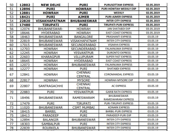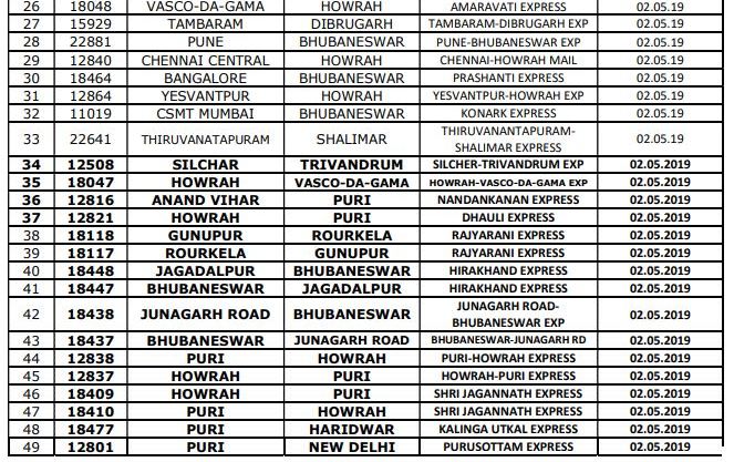 ଏହି ବାତିଲ୍ ଟ୍ରେନ୍ ଗୁଡିକ ମଧ୍ୟରେ ରହିଛି-