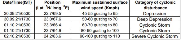 ଗଭୀର ଅବପାତରେ ପରିଣତ ହେବା ପରେ ଏହା ପଶ୍ଚିମ-ଉତ୍ତର ପଶ୍ଚିମ ଦିଗରେ ଗତି କରିବ । ଅଧିକ ଘନୀଭୂତ ହୋଇ ପରବର୍ତ୍ତୀ ୨୪ ଘଣ୍ଟାରେ (କାଲି ସକାଳ ସାଢ଼େ ୫ଟା ସୁଦ୍ଧା) ସାମୁଦ୍ରିକ ଝଡ଼ ରୂପ ଧାରଣ କରିବ ବୋଲି କହିଛନ୍ତି ପାଣିପାଗ ବିଭାଗ । ବାତ୍ୟାର ନାଁ ରହିବ ସାହିନ । ଆସନ୍ତା ୨ତାରିଖରେ ବାତ୍ୟା ସିଭୟର ସାଇକ୍ଲୋନିକ ଷ୍ଟର୍ମ ବି ହୋଇପାରେ । ଏତିକିବେଳେ ପବନର ବେଗ ଘଣ୍ଟାପ୍ରତି ୯୦-୧୦୦ କିଲୋମିଟର ଓ ସ୍ଥଳବିଶେଷରେ ବଢ଼ି ୧୧୦ କିଲୋମିଟ ଛୁଇଁପାରେ ।