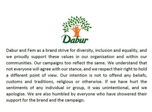 ବିବାଦୀୟ ବିଜ୍ଞାପନ ନେଇ ଶେଷରେ କ୍ଷମା ମାଗିଲା ଡାବର