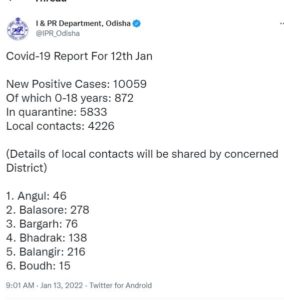 ଅନୁଗୁଳରୁ ୪୬ଜଣ, ବାଲେଶ୍ୱରରୁ ୨୭୮ଜଣ, ବରଗଡ଼ରୁ ୭୬ଜଣ, ଭଦ୍ରକରୁ ୧୩୮ଜଣ, ବଲାଙ୍ଗିରରୁ ୨୧୬ଜଣ, ବୌଦ୍ଧରୁ ୧୫ଜଣ, କଟକରୁ ୮୭୦ଜଣ, ଦେବଗଡ଼ରୁ ୧୮ଜଣ, ଢ଼େଙ୍କାନାଳରୁ ୫୦ଜଣ, ଗଜପତିରୁ ୮୨ଜଣ, ଗଞ୍ଜାମରୁ ୧୫୪ଜଣ, ଜଗତସିଂହପୁରରୁ ୧୪୨ଜଣ, ଯାଜପୁରରୁ ୨୧୨ଜଣ, ଝାରସୁଗୁଡ଼ାରୁ ୨୧୯ଜଣ, କଳାହାଣ୍ଡିରୁ ୧୨୩ଜଣ, କନ୍ଧମାଳରୁ ୩୬ଜଣ, କେନ୍ଦ୍ରାପଡ଼ାରୁ ୫୧ଜଣ, କେନ୍ଦୁଝରରୁ ୧୦୯ଜଣ କରୋନା ପଜିଟିଭ ଚିହ୍ନଟ ହୋଇଛନ୍ତି ।
