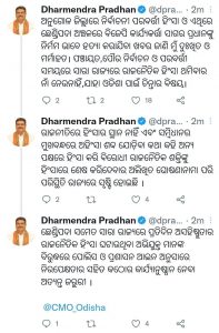 ରାଜନୀତିରେ ହିଂସାର ସ୍ଥାନ ନାହିଁ ଏବଂ ସମ୍ବିଧାନର ମୁଖବନ୍ଧରେ ଅହିଂସା ଶବ୍ଦ ଯୋଡ଼ିବା କଥା କହି ଅନ୍ୟ ପକ୍ଷରେ ହିଂସା କରି ବିରୋଧୀ ରାଜନୈତିକ ଶକ୍ତିଙ୍କୁ ହିଂସାରେ ଶେଷ କରିଦେବାର ଅଲିଖିତ ଘୋଷଣାନାମା ପରି ପରିସ୍ଥିତି ରାଜ୍ୟରେ ସୃଷ୍ଟି ହୋଇଛି ବୋଲି ଟ୍ୱିଟ୍ କହିଛନ୍ତି କେନ୍ଦ୍ରମନ୍ତ୍ରୀ ଧର୍ମେନ୍ଦ୍ର ପ୍ରଧାନ ।