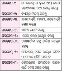 ସେହିପରି ପରୀକ୍ଷାର୍ଥୀମାନେ ନିଜ ହ୍ୱାଟସ୍ଆପ୍ରେ ମଧ୍ୟ ଏହି ଡିଜିଟାଲ୍ ସାର୍ଟିଫିକେଟ୍ ସିଧାସଳଖ ପାଇବା ଲାଗି ସୁଯୋଗ ରହିଛି। ଏଥିଲାଗି ବୋର୍ଡ ପକ୍ଷରୁ ୭୭୧୦୦୫୮୧୯୨ ହ୍ୱାଟସ୍ଆପ୍ ନମ୍ବର ଜାରି କରାଯାଇଛି। ଉକ୍ତ ହ୍ୱାଟସ୍ଆପ୍କୁ ମେସେଜ୍ ପଠାଇ ଆବେଦନକାରୀମାନେ ସହଜରେ ମାଟ୍ରିକ୍ ସାର୍ଟିଫିକେଟ୍ ପାଇପାରିବେ ବୋଲି ବୋର୍ଡ ପକ୍ଷରୁ କୁହାଯାଇଛି।