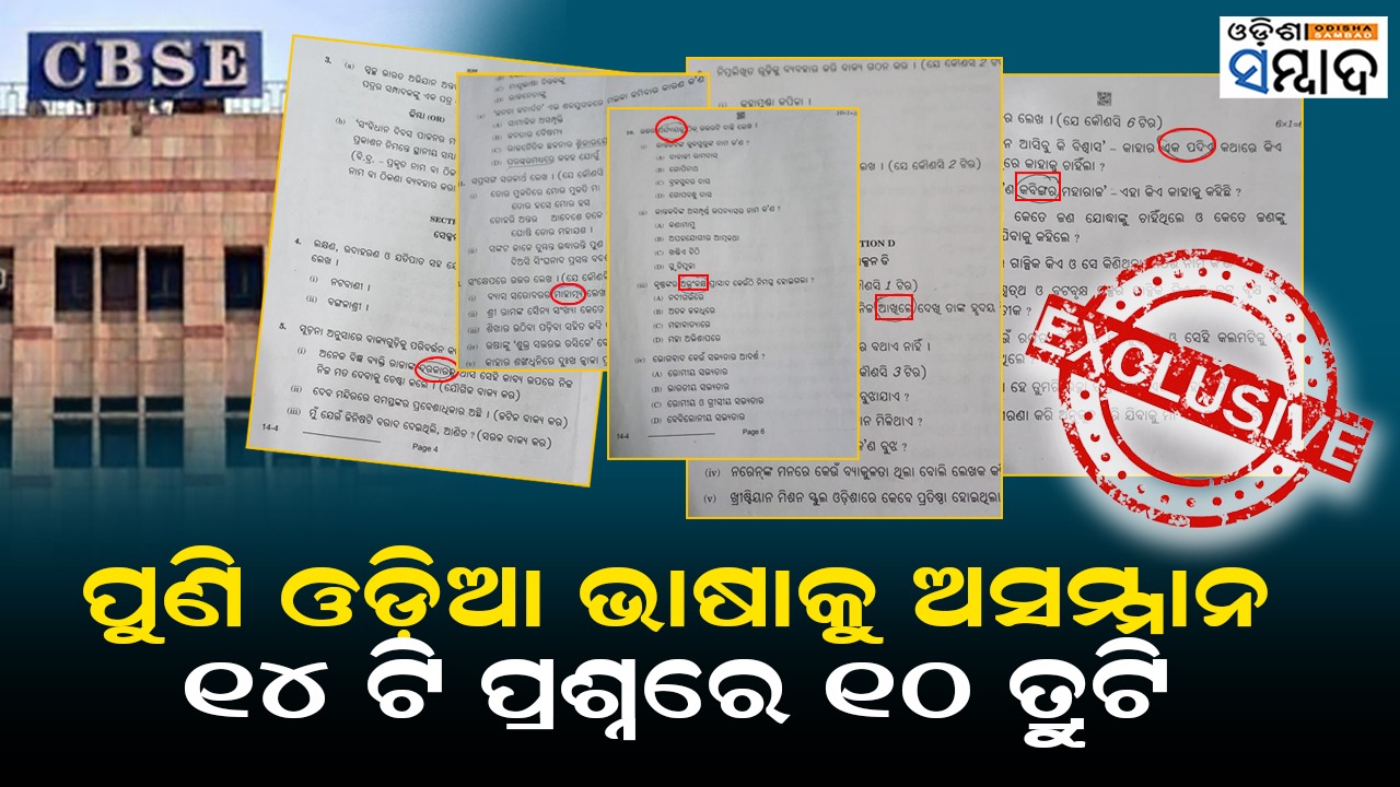 ସିବିଏସଇ ଦଶମ ବୋର୍ଡ ପରୀକ୍ଷାର ଓଡ଼ିଆ ପ୍ରଶ୍ନପତ୍ରରେ ଓଡ଼ିଆ ଭାଷାକୁ ଅସମ୍ମାନ । ୧୪ଟି ପ୍ରଶ୍ନରେ ୧୦ଟି ବନାନଗତ ତ୍ରୁଟି । ଏହା ବ୍ୟତୀତ କେଉଁଠି ଦୁଇଟି ଶବ୍ଦ ଯୋଡ଼ି ହୋଇ ଗୋଟିଏ ହୋଇ ଯାଇଛି ତ କେଉଁଠି ଗୋଟିଏ ଶବ୍ଦକୁ ୨ ଭାଗ କରି ଦିଆଯାଇଛି ।