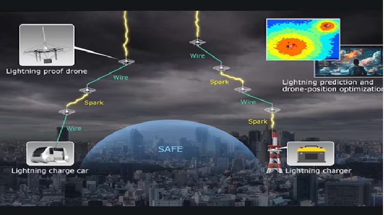 ବର୍ତ୍ତମାନ ବିଜୁଳିରୁ ରକ୍ଷା ପାଇଁ ବଡ଼ ବଡ଼ ଟାୱାର କୋଠାଘରଗୁଡ଼ିକରେ ଲାଇଟନିଂ ରଡ଼୍ ଲଗାଯାଉଛି। କିନ୍ତୁ ଜାପାନର ନିପ୍ପନ୍ ଟେଲିଗ୍ରାଫ୍ ଆଣ୍ଡ ଟେଲିଫୋନ୍ (ଏନ୍ଟିଟି) ଗ୍ରୁପ୍ ଏହାଠାରୁ ଉନ୍ନତ ସମାଧାନ ଖୋଜିବା ପାଇଁ ବର୍ଷ ବର୍ଷ ଧରି କାମ କରୁଛି। ସେମାନେ କହିଛନ୍ତି ଯେ ୨୦୨୪ ଡିସେମ୍ବରରେ ଜାପାନର ଶିମାନେ ଅଞ୍ଚଳର ଏକ ପାହାଡ଼ିଆ ଅଞ୍ଚଳରେ ଏହି ଡ୍ରୋନ୍ର ପରୀକ୍ଷଣ କରିଥିଲେ। ଯେତେବେଳେ ଏକ ଝଡ଼ ଆସିଲା, ଡ୍ରୋନ୍କୁ ୩୦୦ ମିଟର ଉଚ୍ଚତାକୁ ଉଡ଼ାଯାଇଥିଲା ଏବଂ ଏହା ସହ ଏକ କଣ୍ଡକ୍ଟିଭ୍ ୱାୟାର ଯୋଡ଼ାଯାଇଥିଲା, ଯାହା ତଳେ ମାଟିରେ ଲାଗିଥିବା ଏକ ସ୍ୱିଚ୍ ସହ ସଂଯୁକ୍ତ ଥିଲା।