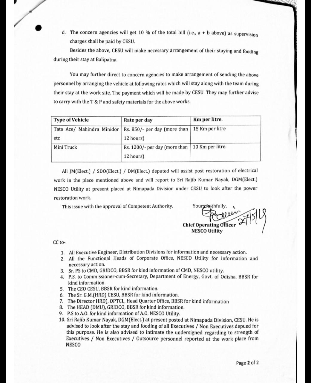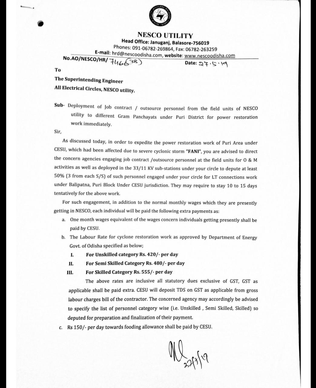ଅନ୍ୟପଟେ ସରକାର ଏ ବାବଦର ଅର୍ଥ ସଂପୃକ୍ତ ବିଦ୍ୟୁତ ସରବରାହ ସଂସ୍ଥା ନେସ୍କୋ କୁ ପୈଠ କରିଥିବା ବେଳେ ନେସ୍କୋ ଏହି କର୍ମଚାରୀ ମାନଙ୍କୁ ମଜୁରି ଦେଇନଥିବା ଅଭିଯୋଗ ହେଉଛି ।