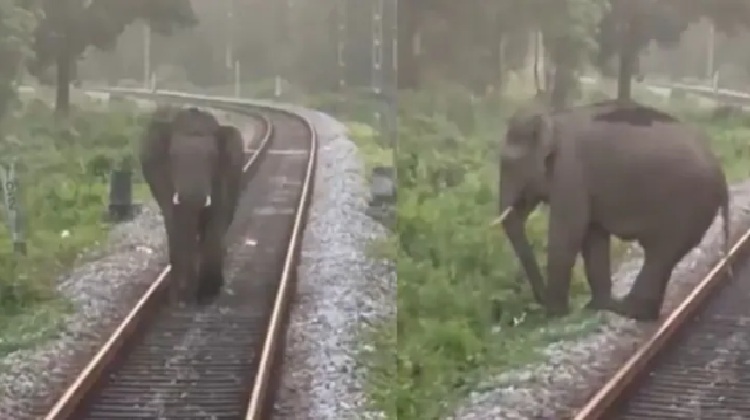 ରେଲୁୱେ ଟ୍ରାକରେ ଚାଲୁଥିଲା ହାତୀ… ହଠାତ୍ ଆସିଗଲା ଟ୍ରେନ, ତାପରେ ଯାହା ହେଲା ସମସ୍ତେ ତାଜୁବ
