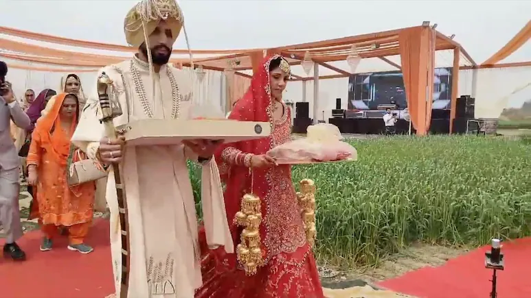 ଚଣ୍ଡିଗଡ: ସାଧାରଣତଃ ଅଧିକାଂଶ ଲୋକ ନିଜ ବିବାହକୁ ସ୍ୱତନ୍ତ୍ର କରିବା ବିଭିନ୍ନ ପ୍ରକାରର ଆୟୋଜନ କରିଥାନ୍ତି । ବିଭିନ୍ନ ପ୍ରକାରର ଉପାୟ ମଧ୍ୟ ଆପଣାଇଥାନ୍ତି । ସେ ସାଜ୍ଜସଜ୍ଜା ହେଉ ବା ମେକ୍ଅପ୍, ବା ଭୋଜି ସବୁକିଛି ଭିନ୍ନ ଭିନ୍ନ ଷ୍ଟାଇଲରେ କରିବାକୁ ଚାହାଁନ୍ତି ସସସ୍ତେ । କିନ୍ତୁ ଆଜି ଆମେ ଏମିତି ଏକ ବିବାହ ବିଷୟରେ କହିବୁ ଯେଉଁ ବିବାହରେ ଚାଷୀ ଆଉ ଚାଷବାସର ବାସ୍ନା ରହିଛି । ବାସ୍ତବରେ ଏବେ ସୋସିଆଲ ମିଡିଆରେ ଏକ ଭିଡିଓ ଭାଇରାଲ ହେଉଛି । ଯାହାକୁ ଦେଖି ଲୋକେ କହୁଛନ୍ତି ଆଜିର ଯୁଗରେ କଣ ସତରେ ଏମିତି ହେଉଛି!