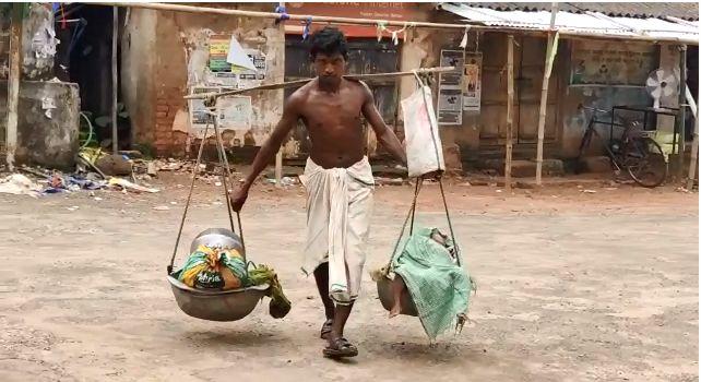 ବାରିପଦା: ବାପା ସାଜିଲା ଶ୍ରବଣ କୁମାର । ନିଜ ଛୁଆକୁ ଭାରାରେ ବୋହି ଚାଲିଲେ ୨୫୦ କିଲୋମିଟର । ମୟୁରଭଂଜ ଜିଲ୍ଲା ବାରିପଦାରେ ଦେଖିବାକୁ ମିଳିଛି କରୋନାର ଏଭଳି କରୁଣ ଦୃଶ୍ୟ ।