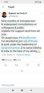 — Baijayant Panda Odia (@Panda_Odia) March 4, 2019