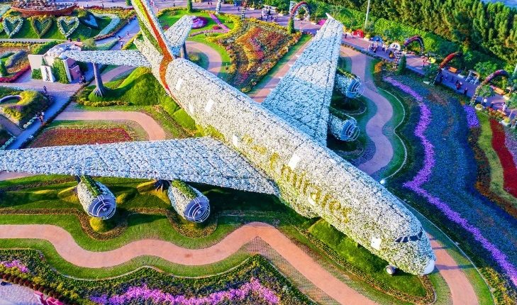 ୨୦୧୬ ମସିହା ଡିସେମ୍ବର ୨ ତାରିଖରେ ଏହି ମିରାକଲ୍ ଗାର୍ଡେନ୍ ସର୍ବସାଧାରଣଙ୍କ ପାଇଁ ଉନ୍ମକ୍ତ ହୋଇଥିଲା । ତିଆରି ହୋଇଥିଲା ବିଭିନ୍ନ ଫୁଲରେ ବିଭିନ୍ନ କଳାକୃତି । ଏଇ ଯେମିତି ଏମିରେଟ୍ ଏୟାରବସ୍ । ୭୩ ମିଟର ଲମ୍ବ ବିଶିଷ୍ଟ ଏହି କଳାକୃତିଟି ୫,୦୦,୦୦୦ ସତସତିକା ଫୁଲଗଛରେ ତିଆରି ହୋଇଥିଲା । ଯେତେବେଳେ ଏହି ଗଛରେ ଫୁଲ ଫୁଟିଲା ୫ ମିଲିୟନ ଫୁଲରେ ଏୟାରବସ୍ ଏ-୩୮୦ ଚମତ୍କାର ଦେଖାଯାଉଥିଲା । ରଙ୍ଗିନ୍ ଓ ଆକର୍ଷଣୀୟ ଏହି ଫୁଲର ଏରୋପ୍ଲେନ୍ ବିଶ୍ୱର ସବୁଠାରୁ ବଡ଼ ଫ୍ଲାୱାର ଆରେଞ୍ଜମେଣ୍ଟ ଭାବେ ଗିନିଜ୍ ବୁକ୍ ଅଫ ୱାର୍ଲଡ ରେକର୍ଡସ୍‌ରେ ସ୍ଥାନ ପାଇଲା ।