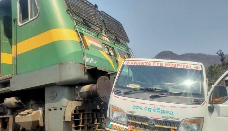 ରାୟଗଡା: ରାୟଗଡାରୁ କୋରାପୁଟ ଯାଇଥିବା କେଆର ରେଳ ଲାଇନର କଞ୍ଜାମଯୋଡି ନିକଟରେ ଏକ ଆମ୍ବୁଲାନ୍ସକୁ ମାଲବାହୀ ଟ୍ରେନ ଧକ୍କା ଦେଇଛି। ଆମ୍ବୁଲାନ୍ସରେ ଥିବା ଆଶା ଦିଦିଙ୍କ ସହ ୮ ରୋଗୀ ଅଳ୍ପକେ ବର୍ତ୍ତିଯାଇଛନ୍ତି। ରାୟଗଡା ଠାରୁ କୋରାପୁଟ ଅଭିମୁଖେ ଯାଉଥିବା କେଆର ରେଳ ଲାଇନରେ ଅନନ୍ତ ଚକ୍ଷୁ ଚିକିତ୍ସାଳୟର ଆମ୍ବୁଲାନ୍ସକୁ ମାଲବାହୀ ଟ୍ରେନ ଧକ୍କା ଦେଇଛି।