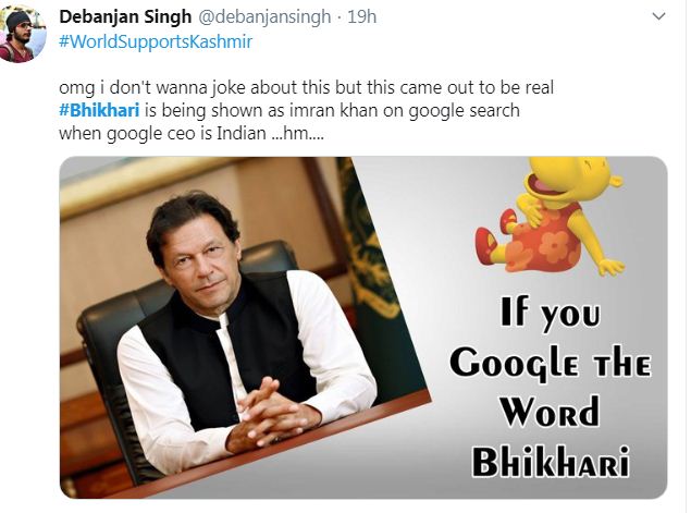 ଆପଣ ଯଦି ଏହାର ସତ୍ୟାସତ୍ୟ ଜାଣିବାକୁ ଚାହୁଁଛନ୍ତି ତେବେ ଗୁଗୁଲ୍ ସର୍ଚ୍ଚ ଇଞ୍ଜିନରେ ଇଂରାଜୀରେ ଲେଖନ୍ତୁ ଭିକାରୀ, ତା’ପରେ ଦେଖିବେ ପାକିସ୍ତାନ ପ୍ରଧାନମନ୍ତ୍ରୀ ଇମ୍ରାନ ଖାନଙ୍କ ଏକ ଫଟୋ । ମାତ୍ର ଇମ୍ରାନଙ୍କୁ ଏହି ଗୁଗୁଲ୍ ସର୍ଚ୍ଚ ପୃଷ୍ଠାରେ ଏକ ଭିକ୍ଷା ଥାଳ ଧରିଥିବାର ଫଟୋ ଦେଖିବାକୁ ପାଇବେ ।