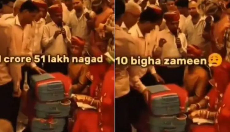 ତେବେ ଭିଡିଓଟି ହେଉଛି ଉତ୍ତରପ୍ରଦେଶର ରାଜଧାନୀ ଲକ୍ଷ୍ନୌ ସହରର । ସେଠାରେ ଏକ ବିବାହରେ ଜଣେ ବରଙ୍କୁ ଯୌତୁକରେ ଯାହା ମିଳିଛି, ତାହା ଆପଣଙ୍କୁ ବି ଟେରା କରିଦେବ । ଭିଡିଓରେ ଦେଖାଯାଉଛି ଯେ ବରକୁ ଯୌତୁକରେ ୨୧୦ ବିଘା ଅର୍ଥାତ୍ ୬୯ ଏକରରୁ ଅଧିକ ଜମି, ଏକ ପେଟ୍ରୋଲ ପମ୍ପ ଏବଂ ୧୫ କୋଟି ୬୫ ଲକ୍ଷ ଟଙ୍କା ନଗଦ, ୩ କିଲୋ ରୂପା ମିଳିଛି। ଯାହା ଏବେ ସୋସିଆଲ ମିଡିଆରେ ହଇଚଇ ସୃଷ୍ଟି କରିଛି।