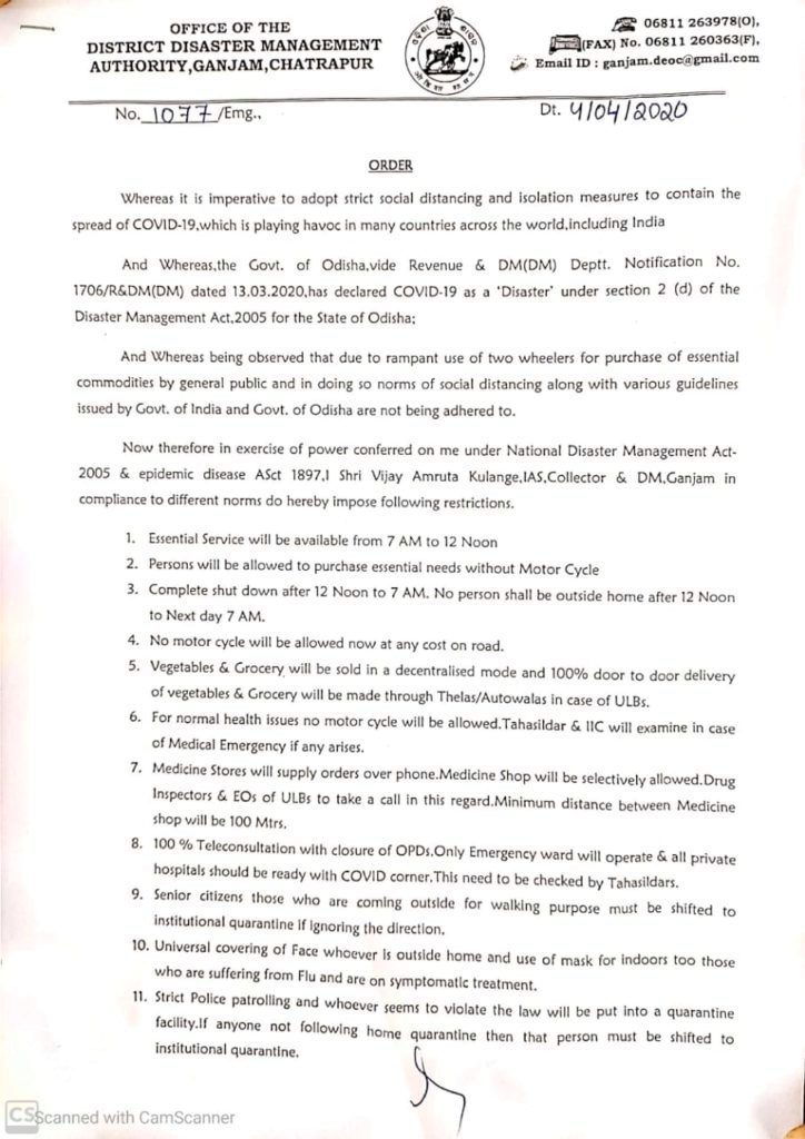 ଦିନ ୧୨ଟାରୁ ସକାଳ ୭ଟା ଯାଏଁ ଗଞ୍ଜାମ ଜିଲ୍ଲା ସଟଡାଉନ୍