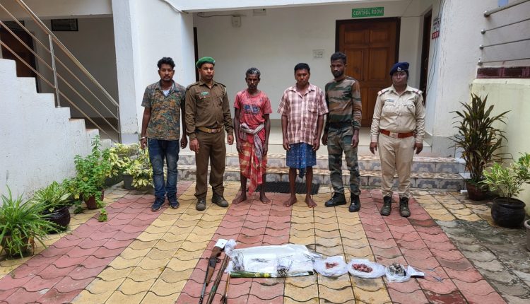 ଶିକାରୀଙ୍କ ପାଖରୁ ୧.୧୫୦ ଗ୍ରାମ ଶିକାର ଝିଙ୍କ ମାଂସ ଓ ୮୮ ଟି ଝିଙ୍କ କଣ୍ଟା ସହିତ ଗୋଟିଏ ଦେଶୀ ବନ୍ଧୁକ ଓ ଧନୁତୀର ଜବତ କରାଯାଇଛି। ଗିରଫଙ୍କୁ କୋର୍ଟ ଚାଲାଣ କରାଯାଇଛି ବୋଲି ଶିମିଳିପାଳ ଅଭୟାରଣ୍ୟର ଦକ୍ଷିଣ ବନଖଣ୍ଡର ଉପ-ନିର୍ଦ୍ଦେଶକ ସମ୍ରାଟ ଗୌଡ଼ା ସୂଚନା ଦେଇଛନ୍ତି।