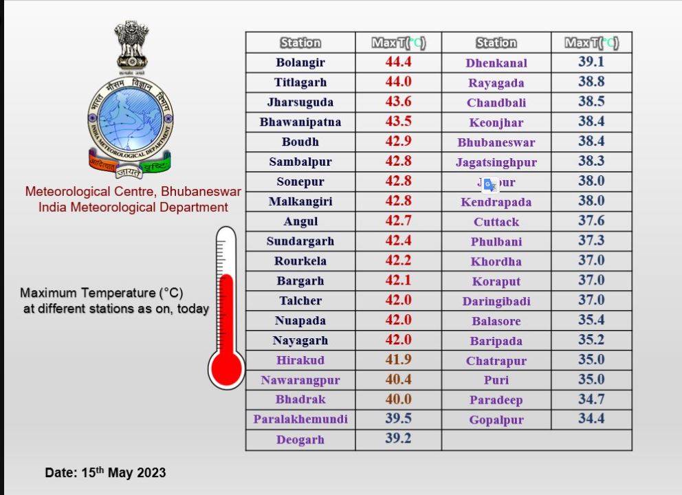 ସେହିପରି ଗତକାଲି ବଲାଙ୍ଗୀରରେ ସର୍ବାଧିକ ତାପମାତ୍ରା ରେକର୍ଡ କରାଯାଇଛି । ବଲାଙ୍ଗିରରେ ସର୍ବାଧିକ ତାପମାତ୍ରା ୪୪.୪ ଡିଗ୍ରୀ ରେକର୍ଡ କରାଯାଇଛି । ସେହିପରି ଟିଟଲାଗଡରେ ତାପମାତ୍ରା ୪୪, ଭୁବନେଶ୍ୱର ୩୮.୪ ଓ କଟକରେ ୩୭. ୬ ଡିଗ୍ରୀ ତାପମାତ୍ରା ରେକର୍ଡ କରାଯାଇଥିଲା । ଡିଗ୍ରୀ ତାପମାତ୍ରା ରେକର୍ଡ କରାଯାଇଛି । ପାରାଦୀପରେ ସର୍ବନିମ୍ନ ତାପାମାତ୍ର ୩୪.୭ ଓ ଗୋପାଳପୁରରେ ୩୪.୪ ଡିଗ୍ରୀ ରେକର୍ଡ କରାଯାଇଛି ।