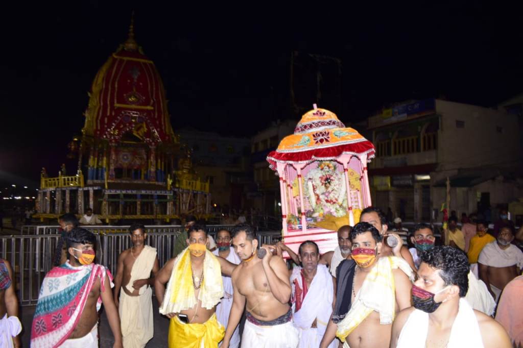 ଆଜିର ଏହି ମହତ୍ୱପୂର୍ଣ୍ଣ ଉତ୍ସବଟିକୁ ରୀତିନୀତିର ସହିତ ପାଳନ କରିବା ସମୟରେ ସେବାୟତ/ସେବକମାନେ କରୋନା ମହାମାରୀ ଯୋଗୁଁ ରହିଥିବା ସମସ୍ତ କଟକଣା ନିୟମକୁ ପାଳନ କରିଥିଲେ । ମୁହଁରେ ମାସ୍କ ଲଗାଇବା ସହିତ ଯଥାସମ୍ଭବ ସାମାଜିକ ଦୂରତା ରକ୍ଷା କରିଥିଲେ ।
