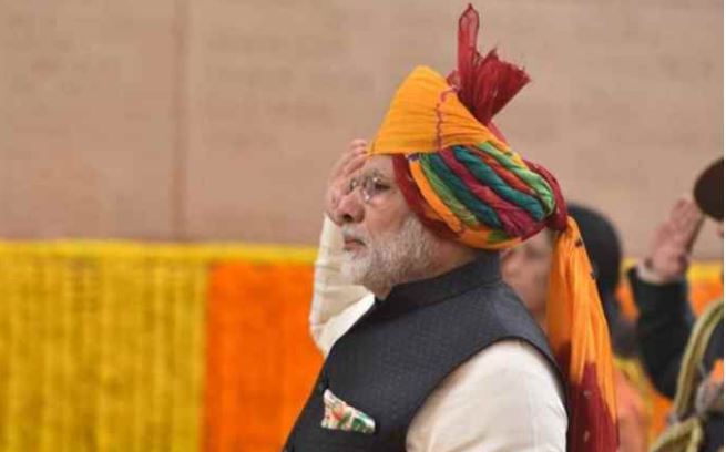 ୭୦ତମ ଗଣତନ୍ତ୍ର ଦିବସ ଅବସରରେ ପିଏମ ମୋଦି ହଳଦିଆ ପଗଡି ପିନ୍ଧିଥିଲେ। ଏଥିରେ ସବୁଜ ରଙ୍ଗ ଓ କିଛି ଗୋଲଡେନ୍ ରଙ୍ଗର ରେଖା ମଧ୍ୟ ପଡ଼ିଥିଲା । ସେ ଏକ ସ୍ଲିଭଲେସ୍ ବେକ ବନ୍ଦ ଥିବା ଜ୍ୟାକେଟ୍ ଓ ଧଳା କୁର୍ତ୍ତା ପିନ୍ଧିଥିଲେ ।