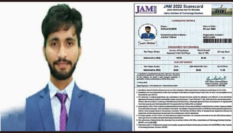 ଚଳିତବର୍ଷ ଫେବ୍ରୁଆରୀ ୧୩ ତାରିଖରେ ଇଣ୍ଡିଆନ୍ ଇନଷ୍ଟିଚ୍ୟୁଟ୍ ଅଫ୍ ଟେକ୍ନୋଲଜି (ରୁର୍କି) ଜଏଣ୍ଟ ଆଡମିଶନ୍ ଟେଷ୍ଟ ଫର୍ ମାଷ୍ଟର୍ସ (JAM) ପ୍ରବେଶିକା ପରୀକ୍ଷା ଆୟୋଜନ କରିଥିଲେ । ଏଥିରେ ବିଚରାଧୀନ କଏଦୀ ସୁରଜ୍ କୁମାର ପଦାର୍ପଣ କରି ସଫଳତାର ଉତ୍ତୀର୍ଣ୍ଣ ହେବା ସହ ସର୍ବଭାରତୀୟ ସ୍ତରରେ ୫୪ତମ ରାଙ୍କ ହାସଲ କରିଛନ୍ତି ।