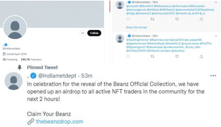 ପାଣିପାଗ ବିଭାଗର ଟ୍ୱିଟର ଏକାଉଣ୍ଟ ହ୍ୟାକ୍, କ୍ରିପ୍ଟୋ ସମ୍ବନ୍ଧୀୟ ହ୍ୟାକର୍ କରିଛନ୍ତି କାରନାମା