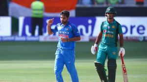 ଟସରେ ଜିତି ପାକିସ୍ତାନ ପ୍ରଥମେ ବ୍ୟ।।ଟିଂ ନେଇଥିଲା । ଖେଳ ଆରମ୍ଭରୁ ପାକିସ୍ତାନ ଝୁଣ୍ଟିଥିଲା । ଭାରତୀୟ ବୋଲର୍ ଭୁବନେଶ୍ୱର କୁମାର ପାକିସ୍ତାନର ଦୁଇ ଓପନରଙ୍କୁ ଦଳର ସ୍କୋର ୩ ହୋଇଥିବା ବେଳେ ପ୍ୟାଭିଲିୟନକୁ ପଠାଇ ଦେଇଥିଲେ । ତାପରେ କିଛି ରନ୍ ବ୍ୟବଧାନରେ ହିଁ ପାକିସ୍ତାନ ନିୟମିତ ୱିକେଟ ହରାଇବାକୁ ଲାଗିଥିଲା । ଦଳର ସ୍କୋର ୧୦୦ ହେଲା ବେଳକୁ ପାକିସ୍ତାନ ୫ଟି ୱିକେଟ ହରାଇ ସାରିଥିଲା । ୪୩.୧ ଓଭରରେ ପାକିସ୍ତାନ ଅଲଆଉଟ୍ ହୋଇ ମାତ୍ର ୧୬୨ ରନ୍ କରିବାକୁ ସକ୍ଷମ ହୋଇଥିଲା । ପାକିସ୍ତାନ ପକ୍ଷରୁ ବାବର ଆଜମ୍ ୪୭ ରନ, ସୋଏବ ମଲ୍ଲିକ୍ ୪୩ ରନ କରିଥିଲେ । ଭାରତ ପକ୍ଷରୁ ଭୁବନେଶ୍ୱର କୁମାର ଓ କେଦାର ଯାଦବ ୩ଟି କରି ୱିକେଟ ଅକ୍ତିଆର କରିଥିଲେ । ବୁମରା ୨ଟି ଏବଂ କୁଲଦିପ ଯାଦବ ଗୋଟିଏ କରି ୱିକେଟ ହାସଲ କରିଥିଲେ ।