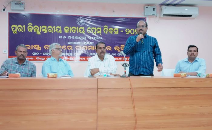 ପୁରୀ: ଜିଲ୍ଲାସ୍ତରୀୟ ଜାତୀୟ ପ୍ରେସ ଦିବସ ଆଜି ସଦଭାବନା ସଭାଗୃହ ପରିସରରେ ପାଳିତ ହୋଇଯାଇଛି । ରାଷ୍ଟ୍ର ଗଠନରେ ଗଣମାଧ୍ୟମର ଭୂମିକା ସମ୍ପର୍କରେ ବିଶେଷ ଆଲୋଚନା ହୋଇଥିଲା । ଅତିରିକ୍ତ ଜିଲ୍ଲାପାଳ ପ୍ରଦୀପ କୁମାର ସାହୁୂ ଗଣମାଧ୍ୟମ ସମାଜ ପାଇଁ କେତେ ଗୁରୁତ୍ୱପୂର୍ଣ୍ଣ ସେ ନେଇ ଆଲୋକପାତ କରିଥିଲେ । ଉପ ଜିଲ୍ଲାପାଳ ଭବତାରଣ ସାହୁ ସତ୍ୟ ଓ ନିରପେକ୍ଷ ସମ୍ବାଦ ପରିବେଷଣ ଗଣତନ୍ତ୍ରକୁ ମଜଭୁତ କରିଥାଏ ବୋଲି କହିଥିଲେ । ମୁଖ୍ୟ ବକ୍ତା ଭାବେ ପ୍ରଫେସର ମାନସ ରଞ୍ଜନ ମହାପାତ୍ର ଗଣମାଧ୍ୟମର ସୃଷ୍ଟି, ପ୍ରେସ କ୍ଲବ ଅଫ ଇଣ୍ଡିଆର ଜନ୍ମ ସମ୍ପର୍କରେ ଆଲୋଚନା କରିବା ସହ ଉତମ ଓ ଗୁଣାତ୍ମକ ସାମ୍ବାଦିକତା ଗଣତନ୍ତ୍ର ପାଇଁ ଉଚିତ ବୋଲି କହିଥିଲେ ।