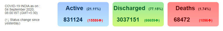 ସେହିପରି ଗତ ୨୪ ଘଣ୍ଟାରେ ଆଉ ହଜାରେ ୯୪ ଜଣ ମୃତ୍ୟୁବରଣ କରିଛନ୍ତି । ଦେଶରେ ପ୍ରାଣ ହରାଇଲେଣି ୬୮ ହଜାର ଆକ୍ରାନ୍ତ । ମୃତ୍ୟୁହାର ରହିଛି ୧.୭୩ ପ୍ରତିଶତ ।