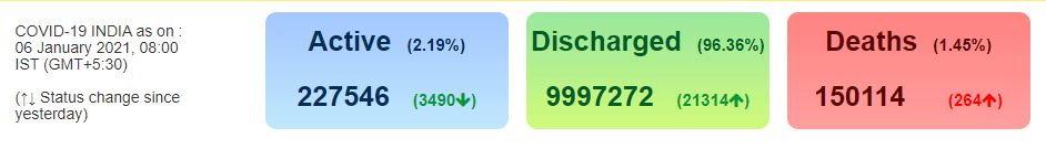 ସେହିପରି ପ୍ରତିଦିନ ବଢୁଛି ସୁସ୍ଥହାର । ଆସନ୍ତାକାଲି ଦେଶରେ କୋଟିଏ ଛୁଇଁପାରେ ସୁସ୍ଥସଂଖ୍ୟା । ବର୍ତ୍ତମାନ ସୁଦ୍ଧା କରୋନାରୁ ଆରୋଗ୍ୟ ଲାଭ କରିଛନ୍ତି ୯୯ଲକ୍ଷ ୯୭ହଜାର ୨୭୨ ସଂକ୍ରମିତ । ଗତ ୨୪ଘଣ୍ଟାରେ ସୁସ୍ଥ ହୋଇଛନ୍ତି ୨୧ହଜାର ୩୧୪ ଆକ୍ରାନ୍ତ । ମୋଟ୍ ସୁସ୍ଥହାର ରହିଛି ୯୬.୩୬% । ବର୍ତ୍ତମାନ ୨ଲକ୍ଷ ୨୭ହଜାର ୫୪୬ଟି ଆକ୍ଟିଭ କେସ୍ ରହିଛି ।