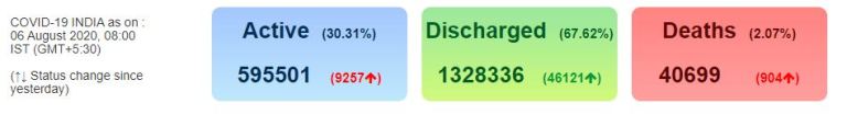 ଜୁଲାଇ ୧୬ ତାରିଖରେ ଦେଶରେ କରୋନା ସଂକ୍ରମିତଙ୍କ ସଂଖ୍ୟା ୧୦ ଲକ୍ଷ ଟପିଥିଲା । ଶେଷ ଦଶ ଲକ୍ଷ ଆକ୍ରାନ୍ତ ମାତ୍ର ୨୧ ଦିନରେ ବାହାରିଛନ୍ତି । କେବଳ ୪୨ ପ୍ରତିଶତ ନୂଆ ଆକ୍ରାନ୍ତ ଆନ୍ଧ୍ରପ୍ରଦେଶ, ବିହାର, କର୍ଣ୍ଣାଟକ, ଉତ୍ତରପ୍ରଦେଶ, ପଶ୍ଚିମବଙ୍ଗରୁ ଚିହ୍ନଟ ହୋଇଛନ୍ତି । ଦେଶରେ କରୋନାର ନୂଆ ହଟସ୍ପଟ୍ ପାଲଟିଛନ୍ତି ଆନ୍ଧ୍ରପ୍ରଦେଶ, ଉତ୍ତରପ୍ରଦେଶ ଓ କର୍ଣ୍ଣାଟକ ।