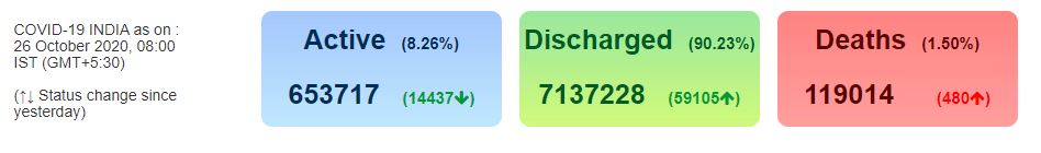 — Ministry of Health (@MoHFW_INDIA) October 26, 2020