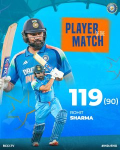 ଆରମ୍ଭରୁ ହିଁ ଆଟାକିଂ ମୁଡ୍ରେ ଥିଲେ ହିଟ୍ ମ୍ୟାନ୍ ରୋହତ ଶର୍ମା । ସେ ୯୦ ବଲ୍ରେ ୮ ଛକ୍କା ଓ ୧୨ ଚୌକା ମାରି ୧୧୯ ରନ୍ ସ୍କୋର୍ କରିଛନ୍ତି । ଯାହା ଆଜିର ଟିମ୍ କୁ ଜିତାଇବାରେ ବଳ ଯାଗାଇଛି । ରୋହିତଙ୍କ ବିସ୍ଫୋରକ ବ୍ୟାଟିଂକୁ ନେଇ ଦର୍ଶକମାନ ଭରପୁର ଉପଭୋଗ କରିଥିଲେ । ଅନ୍ୟପଟେ ଶୁଭମନ ଗିଲ ଅର୍ଦ୍ଧଶତକ କରି ଆଉଟ ହୋଇଯାଇଥିଲେ । ସେ ୫୨ ବଲରେ ୬ ଚଉକା ଓ ଗୋଟିଏ ଛକା ସହ ୬୦ ରନ କରିଥିଲେ ।