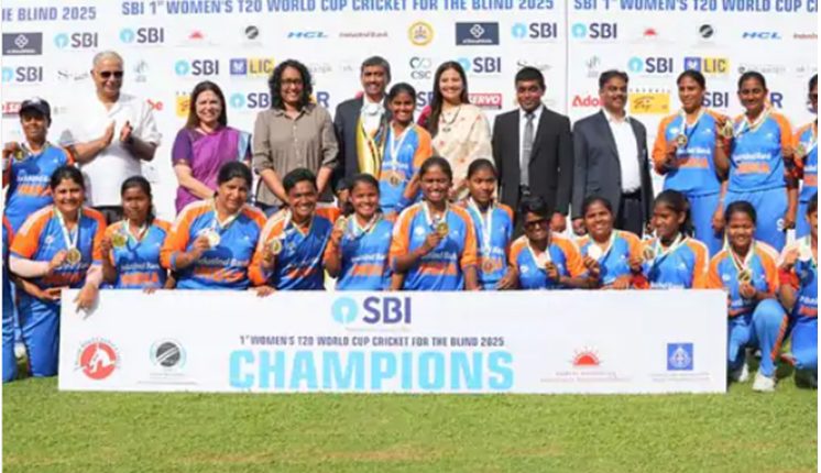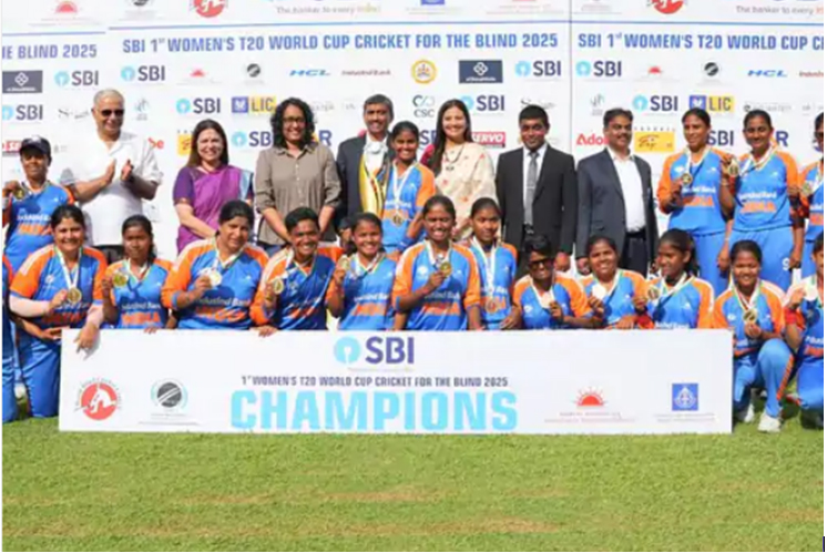 ନୂଆଦିଲ୍ଲୀ: ପ୍ରଥମ ଥର ଖେଳା ଯାଇଥିବା ବ୍ଲାଇଣ୍ଡ ମହିଳା ଟି୨୦ ବିଶ୍ୱକପ କ୍ରିକେଟରେ ଭାରତ ଇତିହାସ ରଚିଛି । ରବିବାର କଲମ୍ବୋରେ ଖେଳା ଯାଇଥିବା ଫାଇନାଲରେ ଭାରତ ୭ ୱିକେଟରେ ନେପାଳକୁ ପରାସ୍ତ କରି ଟାଇଟଲ ହାସଲ କରିଛି । ନେପାଳ ପ୍ରଥମେ ବ୍ୟାଟିଂ କରି ୨୦ ଓଭରରେ ୫ ୱିକେଟ ହରାଇ ୧୧୪ ରନ କରିଥିଲା । ଜବାବରେ ଭାରତ ୧୨ ଓଭରରେ ୩ ୱିକେଟ ହରାଇ ବିଜୟ ଲକ୍ଷ୍ୟ ହାସଲ କରି ନେଇଥିଲା । ଫୁଲା ସାରେନ ୨୭ ବଲରେ ଦ୍ରୁତ ୪୪ ରନ କରିଥିଲେ । ସେମିଫାଇନାଲରେ ଅଷ୍ଟ୍ରେଲିଆକୁ ହରାଇ ଭାରତ ଫାଇନାଲରେ ପ୍ରବେଶ କରିଥିଲା ।