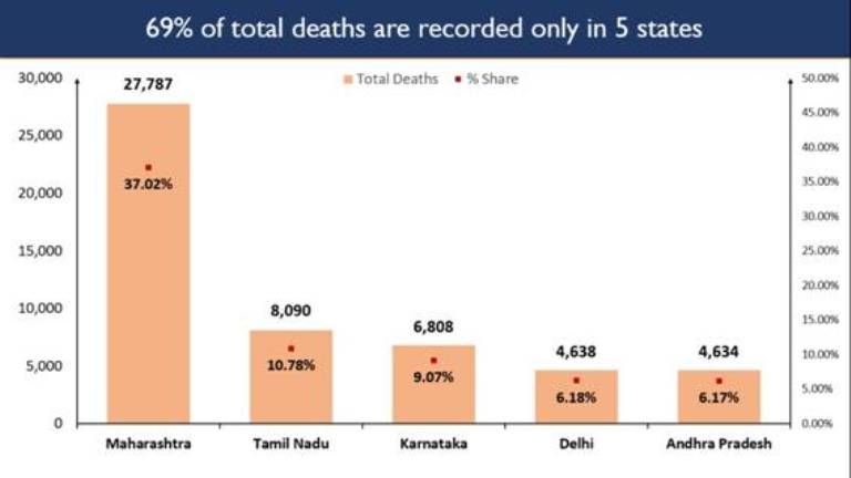 ୫ଟି ରାଜ୍ୟ ୬୯% ମୃତ୍ୟୁ
