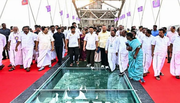 ଚେନ୍ନାଇ: ତାମିଲନାଡୁର ମୁଖ୍ୟମନ୍ତ୍ରୀ ଏମ.କେ ଷ୍ଟାଲିନ ସୋମବାର କନ୍ୟାକୁମାରୀରେ ବିବେକାନନ୍ଦ ସ୍ମାରକୀରୁ ଥିରୁଭଲ୍ଲୁଭରଙ୍କ ପ୍ରତିମୂର୍ତ୍ତି ସ୍ଥଳକୁ ସଂଯୋଗ କରୁଥିବା ଏକ ନୂତନ କାଚ ବ୍ରିଜ୍ ଉଦଘାଟନ କରିଛନ୍ତି। କନ୍ୟାକୁମାରୀଠାରେ ସମୁଦ୍ର ଉପରେ ଦେଶର ପ୍ରଥମ କାଚ ବ୍ରିଜ ନିର୍ମାଣ କରାଯାଇଛି।