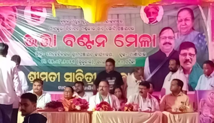 କେନ୍ଦ୍ରପଡା: ଦଳୀୟ କାର୍ଯ୍ୟକ୍ରମ ପାଲଟିଛି ସରକାରୀ କାର୍ଯ୍ୟକ୍ରମ! ଭତ୍ତା ଟଙ୍କା ବାଣ୍ଟିବା ଆଳରେ ବିଧାୟିକା ତାଙ୍କ ପୁଅର କରୁଛନ୍ତି ପ୍ରଚାର। ଏଥିପାଇଁ ତାଙ୍କ ସହ ପୁଅର ଫଟୋ ଓ ମୁଖ୍ୟମନ୍ତ୍ରୀଙ୍କ ବ୍ୟାନର ଲଗାଇଛନ୍ତି। ଆଜି କେନ୍ଦ୍ରାପଡା ମାର୍ଶାଘାଇ ବ୍ଲକରେ ୭ଟି ଗ୍ରାମପଞ୍ଚାୟତବାସୀଙ୍କୁ ଭତ୍ତା ଟଙ୍କା ବଣ୍ଟାଯାଉଥିଲା। ଏହି ସମୟରେ ସରକାରୀ ମଞ୍ଚରେ ଦୂରୁପଯୋଗ ହୋଇଥିବା ଅଭିଯୋଗ ଆଣିଛନ୍ତି ସ୍ଥାନୀୟ ବିଜେପି ନେତା ତେଜେଶ୍ବର ପରିଡା।