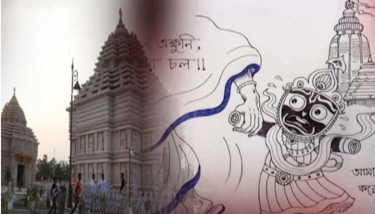 ପୁରୀ: ପଶ୍ଚିମବଙ୍ଗ ଦିଘାରେ ପ୍ରତିଷ୍ଠା ହୋଇଥିବା ଜାଗନ୍ନାଥ ମନ୍ଦିରକୁ ନେଇ ବାଦ ବିବାଦ ଶେଷ ହୋଇ ନଥିବାବେଳେ, ଏବେ ଏହାକୁ ନେଇ କିଛି ବ୍ୟଙ୍ଗ ଚିତ୍ର ସୋସିଆଲ ମିଡ଼ିଆରେ ଭାଇରାଲ ହେବାରେ ଲାଗିଛି । ଏହି ବ୍ୟଙ୍ଗ ଚିତ୍ରରେ ଦେଖିବାକୁ ମିଳିଛି ଯେ, ଜଣେ ଧଳା ଲୁଗା ପିନ୍ଧିଥିବା ସ୍ତ୍ରୀ ଲୋକ ଜଗନ୍ନାଥଙ୍କର ହାତକୁ ଧରି ଟାଣି ଟାଣି ପୁରି ବଡ ଦେଉଳରୁ ଦିଘା ଜଗନ୍ନାଥ ମନ୍ଦିରକୁ ଯାଉଛନ୍ତି । ଏହି ଫଟୋ ବ୍ୟତୀତ ବଙ୍ଗଳା ଭାଷାରେ କିଛି ଲେଖାଯାଇଥିବା ଦେଖିବାକୁ ମିଳିଛି ।