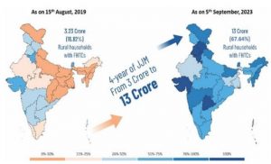 ଏହି ମିଶନ ରାଜ୍ୟ / କେନ୍ଦ୍ରଶାସିତ ଅଞ୍ଚଳ ସହିତ ଭାଗିଦାରୀରେ ଏହି ଯୋଜନାକୁ କାର୍ଯ୍ୟକାରୀ କରୁଛି ଏବଂ ବିକାଶ ସହଯୋଗୀ ମାନଙ୍କ ସମେତ ସମସ୍ତଙ୍କ ମିଳିତ ପ୍ରୟାସ କାରଣରୁ ତୃଣମୂଳ ସ୍ତରରେ ପରିବର୍ତ୍ତନ ପରିଲକ୍ଷିତ ହେଉଛି। ପ୍ରତି ସେକେଣ୍ଡରେ, ଗୋଟିଏ ଟ୍ୟାପ୍ ପାଣି ସଂଯୋଗ ଲଗାଯାଉଛି, ଯାହା ଦେଶର ଗ୍ରାମୀଣ ଚିତ୍ରକୁ ବଦଳାଇ ଦେଉଛି। ୨୦୨୩ ଜାନୁଆରୀ ମାସ ପହିଲାରୁ ଦୈନିକ ହାରାହାରି ୮୭,୫୦୦ ଜଳ ମାଧ୍ୟମରେ ଜଳ ସଂଯୋଗ ପ୍ରଦାନ କରାଯାଉଛି। ୨୦୨୩ ଜାନୁଆରୀ ମାସରୁ ୬୧.୦୫ ଲକ୍ଷ କାର୍ଯ୍ୟକ୍ଷମ ଘରୋଇ ଟ୍ୟାପ୍ ସଂଯୋଗ (ଏଫ୍ଏଚ୍ଟିସି) ସ୍ଥାପନ କରି ଉତ୍ତରପ୍ରଦେଶ ଚଳିତ ବିତ୍ତୀୟ ବର୍ଷରେ ଅଗ୍ରଗତି ତାଲିକାର ଶୀର୍ଷ ସ୍ଥାନରେ ରହିଛି।