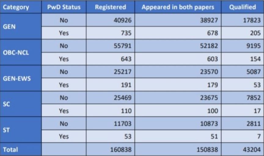 ନୂଆଦିଲ୍ଲୀ: ପ୍ରକାଶ ପାଇଲେ ଜେଇଇ ଆଡଭାନ୍ସ ରେଜଲ୍ଟ । ମୋଟ୍ ୧ଲକ୍ଷ ୫୦ ହଜାର ୮୩୮ ଛାତ୍ରଛାତ୍ରୀ ଜେଇଇ ଦେଇଥିଲେ । ପେପର-୧ ଓ ପେପର-୨ରୁ ମୋଟ୍ ୪୩ ହଜାର ୨୦୪ ଜଣ ଜେଇଇ ଆଡଭାନ୍ସରେ କୃତକାର୍ଯ୍ୟ ହୋଇଛନ୍ତି । ଏମାନଙ୍କ ଭିତର ଅଛନ୍ତି ୬ ହଜାର ୭୦୭ ଜଣ ଛାତ୍ରୀ ଓ ୩୬ ହଜାର ୪୯୭ ଛାତ୍ର ।