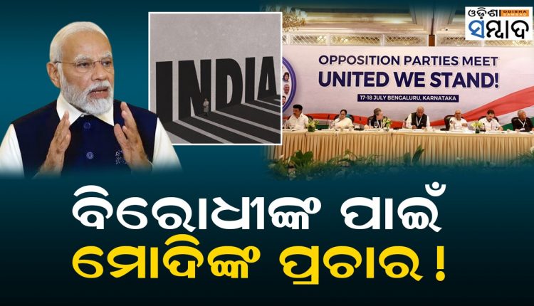ତେଣୁ ଗୋଟିଏ ପଟେ ଇଣ୍ଡିଆ ନାଁ କୁ ବ୍ୟାପକ ଭାବେ ପ୍ରଚାର ପ୍ରସାର କରିବାକୁ ବିରୋଧୀ ଉଦ୍ୟମ ଜୋରଦାର କରିଥିବା ବେଳେ ବିଜେପି ଏହାକୁ ପ୍ରତିହତ କରିବାକୁ ଉଦ୍ୟମ ଆରମ୍ଭ କରିଛି।