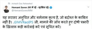 ସୋସିଆଲ୍ ମିଡିଆରେ ଭିଡିଓଟି ଭାଇରାଲ୍ ହେବା ପରେ ଝାଡଖଣ୍ଡ ମୁଖ୍ୟମନ୍ତ୍ରୀ ହେମନ୍ତ ସୋରେନ୍ ତଦନ୍ତ କରିବା ସହ ସଂପୃକ୍ତ ଥାନାଧିକାରୀଙ୍କ ବିରୋଧରେ କଡା କାର୍ଯ୍ୟାନୁଷ୍ଠାନ ଗ୍ରହଣ କରିବାକୁ ଡିଜିପି ଏମ୍.ଭି ରାଓଙ୍କୁ ନିର୍ଦ୍ଦେଶ ଦେଇଥିଲେ ।