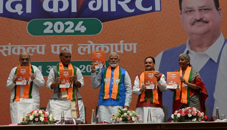 ସୂଚନାଯୋଗ୍ୟ ଯେ, ପ୍ରଧାନମନ୍ତ୍ରୀ ନରେନ୍ଦ୍ର ମୋଦୀ ଆଜି ସଂକଳ୍ପ ପତ୍ର ଜାରି କରିଛନ୍ତି । ଏଥିରେ ଅନେକ ପ୍ରକାରର ପ୍ରତିଶ୍ରୁତି ଦିଆଯାଇଛି । ଏହି ଅବସରରେ ପ୍ରଧାନମନ୍ତ୍ରୀଙ୍କ ସହ ସ୍ବରାଷ୍ଟ୍ର ମନ୍ତ୍ରୀ ଅମିତ ଶାହା, ପ୍ରତିରକ୍ଷା ମନ୍ତ୍ରୀ ରାଜନାଥ ସିଂ ଏବଂ ଦଳର ସଭାପତି ଜେପି ନଡା ଉପସ୍ଥିତ ଥିଲେ ।