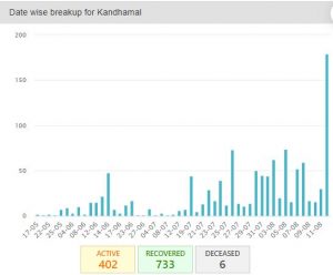 କନ୍ଧମାଳ ଜିଲ୍ଲାରେ କରୋନା ସଂକ୍ରମିତଙ୍କ ସଂଖ୍ୟା ୧୧ ଶହ ୪୧କୁ ବୃଦ୍ଧି ପାଇଛି । ୭୩୩ ସୁସ୍ଥ ହୋଇଥିବା ବେଳେ ଆକ୍ଟିଭ୍ କେସ୍ ରହିଛି ୪୦୨ । ୬ ଜଣଙ୍କର ମୁଣ୍ଡର ନେଇଛି କରୋନା । ମେ ୧୭ ତାରିଖରେ କନ୍ଧମାଳ ଜିଲ୍ଲାରୁ ପ୍ରଥମ ପଜିଟିଭ୍ କେସ୍ ବାହାରିଥିଲା ।