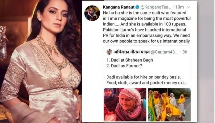 ୨୦୨୧ ମସିହାର, ଦିଲ୍ଲୀ ସୀମାରେ ଐତିହାସିକ କୃଷକଙ୍କ ପ୍ରତିବାଦ ସମୟରେ, କଙ୍ଗନା ରାଣାୱତ ସୋସିଆଲ ମିଡିଆ ପ୍ଲାଟଫର୍ମ X (ସେତେବେଳେ ଟ୍ୱିଟର)ରେ ଏକ ବିବାଦୀୟ ଟ୍ୱିଟ୍ ପୋଷ୍ଟ କରିଥିଲେ, ଯେଉଁଥିରେ ଜଣେ ବୃଦ୍ଧ ମହିଳାଙ୍କ ଫଟୋ ସେୟାର କରାଯାଇଥିଲା। କଙ୍ଗନା ଭଟିଣ୍ଡା ର ବାହାଦୁରଗଡ଼ ଜାଣ୍ଡିଆ ଗାଁର ୮୭ ବର୍ଷୀୟ ଚାଷୀ ମହିନ୍ଦର କୌରଙ୍କୁ ଶାହିନ ବାଗର ‘ଦାଦୀ’ ଭାବି ଭୁଲ କରିଥିଲେ। ସେ କହିଥିଲେ, ‘ଏପରି ମହିଳାମାନେ ପ୍ରତ୍ୟେକଙ୍କୁ ୧୦୦ ଟଙ୍କା ଦେଇ ପ୍ରତିବାଦରେ ଯୋଗଦେବାକୁ ଉପଲବ୍ଧ।’ ଏହି ମନ୍ତବ୍ୟ କେବଳ ମହିନ୍ଦର କୌରଙ୍କ ନୁହେଁ ବରଂ ସମଗ୍ର ଚାଷୀ ସମାଜର ଭାବନାକୁ ଆଘାତ ଦେଇଥିଲା। ମହିନ୍ଦର କୌର କଙ୍ଗନାଙ୍କ ବିରୋଧରେ ମାନହାନି ମାମଲା ଦାୟର କରିଥିଲେ, ଏହାକୁ ତାଙ୍କ ଭାବମୂର୍ତ୍ତିକୁ ଖରାପ କରିବାର ପ୍ରୟାସ ବୋଲି କହିଥିଲେ।ପ୍ରକୃତରେ, କଙ୍ଗନା ରାଣାୱତ ଏକ ଟ୍ୱିଟ୍ ରିଟ୍ୱିଟ୍ କରିଥିଲେ ଯେଉଁଥିରେ ସେ ବଠିଣ୍ଡା ଜିଲ୍ଲାର ଏକ ଗାଁର ମହିଳା ମହିନ୍ଦର କୌରଙ୍କ ଉପରେ ମନ୍ତବ୍ୟ ଦେଇଥିଲେ। ଟ୍ୱିଟ୍ ରେ କଙ୍ଗନା ମହିନ୍ଦର କୌରଙ୍କୁ ଶାହିନ ବାଗ ପ୍ରତିବାଦର ଜଣେ ବୃଦ୍ଧା ମହିଳା ବିଲକିସ୍ ବାନୋଙ୍କ ସହ ତୁଳନା କରିଥିଲେ। ଏହା ପୂର୍ବରୁ, କଙ୍ଗନା ରାଣାୱତ ଅକ୍ଟୋବର ୨୭, ୨୦୨୫ରେ ବଠିଣ୍ଡା କୋର୍ଟରେ ହାଜର ହୋଇ ବୃଦ୍ଧା ମହିଳାଙ୍କୁ କ୍ଷମା ମାଗିଥିଲେ।