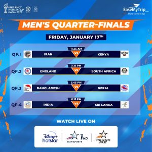ଭାରତୀୟ ପୁରୁଷ ଖୋଖୋ ଦଳ କ୍ବାର୍ଟରରେ ଆଜି ଶ୍ରୀଲଙ୍କାକୁ ଭେଟିବ । ରାତି ୮.୧୫ରେ ଏହି ଖେଳର ସିଧା ପ୍ରସାରଣ ଷ୍ଟାର ସ୍ପୋର୍ଟ୍ସ ନେଟଓ୍ବର୍କରେ ଦେଖି ପାରିବେ । ସେହିଭଳି ଭାରତୀୟ ମହିଳା ଦଳ ଆଜି କ୍ବାଟରଫାଇନାଲ ମ୍ୟାଚରେ ବାଂଲାଦେଶକୁ ଭେଟିବ । ରାତି୭ଟାରେ ଏହି ମ୍ୟାଚ ଖେଳାଯିବ ।