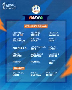 ବିଶ୍ବକପ ଭାରତୀୟ ପୁରୁଷ ଓ ମହିଳା ଦଳରେ ଅଧିନାୟକ କ୍ରମାଗତ ଭାବେ ପ୍ରତୀକ ଓ୍ବାଇକର ଓ ପ୍ରିୟଙ୍କା ଇଙ୍ଗଲେ ରହିବେ ।