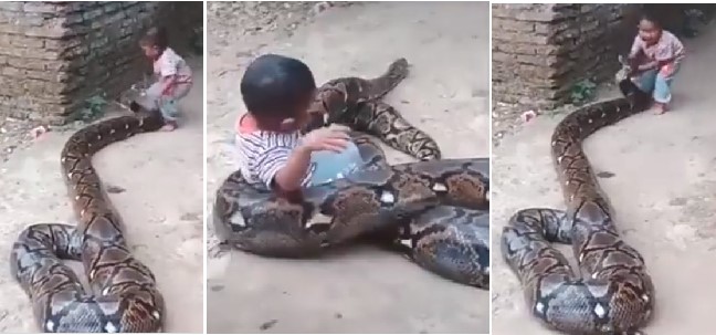 ଅଜଗର ସହ ଖେଳୁଛି ପିଲା, ଲୋକେ କହିଲେ ଦାୟିତ୍ୱହୀନ ପିତାମାତା
