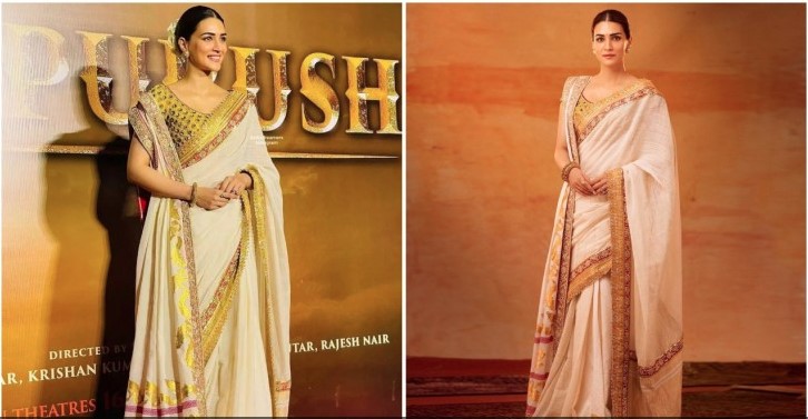 କ୍ରିତି ସାନନ ଏକ କଷ୍ଟମ-ଡିଜାଇନ ହୋଇଥିବା କେରଳ କଟନ ଡବଲ ଡ୍ରାପ ଶାଢି ପିନ୍ଧିଥିଲେ, ଯେଉଁଥିରେ ୨୪ କ୍ୟାରେଟ ସୁନା ଲାଗିଥିଲା । ଏହି ଶାଢିକୁ ଫ୍ୟାଶନ ଡିଜାଇନର ଆବୁ ଜାନି ଏବଂ ସନ୍ଦୀପ ଖୋସଲା ପ୍ରସ୍ତୁତ କରିଥିଲେ । ଡିଜାଇନର ସନ୍ଦୀପ ଖୋସଲା ନିଜ ଇନଷ୍ଟାଗ୍ରାମରେ କ୍ରିତି ସାନନଙ୍କ ଏହି ଫଟୋ ଶେୟାର କରିବା ସହ ଡିଜାଇନ ବିଷୟରେ ଉଲ୍ଲେଖ କରିଛନ୍ତି । କ୍ରିତିଙ୍କ ଡବଲ ଡ୍ରପ ହୋଇଥିବା କେରଳ କଟନ ଶାଢିରେ ୨୪ କ୍ୟାରେଟ ସୁନା ଖାଡି ବ୍ଲକ ପ୍ରିଣ୍ଟରହିଛି । ଏହାବ୍ୟତୀତ ଅଭିନେତ୍ରୀଙ୍କ ବ୍ଲାଉଜକୁ ତମ୍ବା ଫୁଲ ଏବଂ ଏମ୍ରଡୋରିରେ ପ୍ରସ୍ତୁତ କରାଯାଇଛି ।