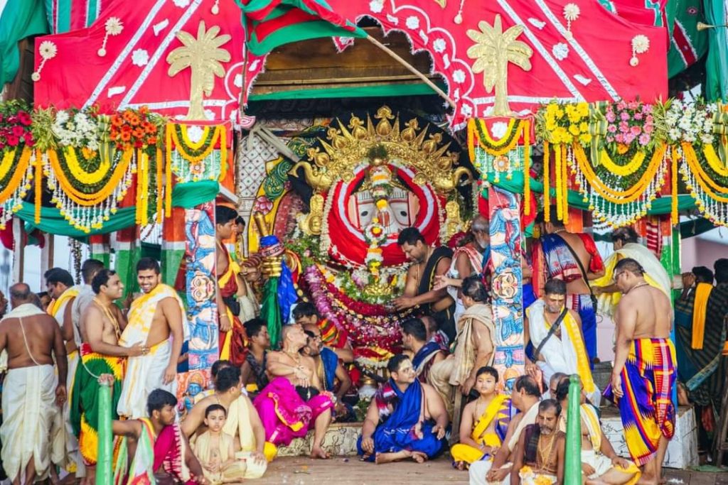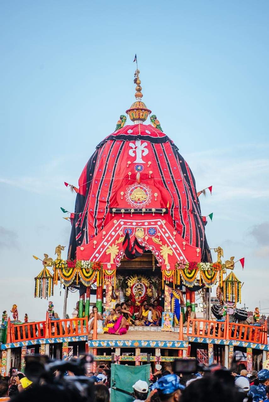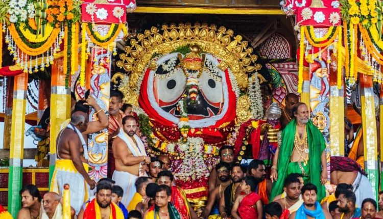 ପୁରୀ: ରଥ ଉପରେ ତିନି ଠାକୁର। ପାଦରୁ ମସ୍ତକ ମହଣ ମହଣ ସ୍ବର୍ଣ୍ଣ ଅଳଙ୍କାରରେ ଆଭୂଷିତ ହୋଇ ଅଗଣିତ ଭକ୍ତଙ୍କୁ ରଥ ଉପରୁ ଦେଇଛନ୍ତି ଦର୍ଶନ।