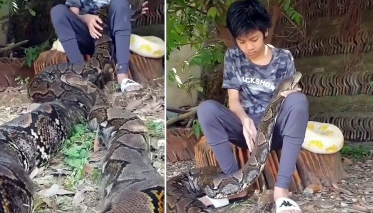ଭିଡିଓଟି ଏକ ଇନ୍ଷ୍ଟାଗ୍ରାମ ଆକାଉଣ୍ଟରେ ଶେୟାର କରାଯାଇଛି। ସେଥିରେ ଦେଖିବାକୁ ମିଳୁଛି ଜଣେ ବାଳକ କୋଳରେ ଦୁଇଟି ବିଶାଳକାୟ ଅଜଗର ଧରି ଖେଳୁଛି । ଏହି ସାପ ଅତ୍ୟନ୍ତ ଭୟଙ୍କର ହୋଇଥିବା ବେଳେ ପିଲାଟି ତାଙ୍କ ସହ ଆରାମରେ ବସି ଖେଳୁଛି।